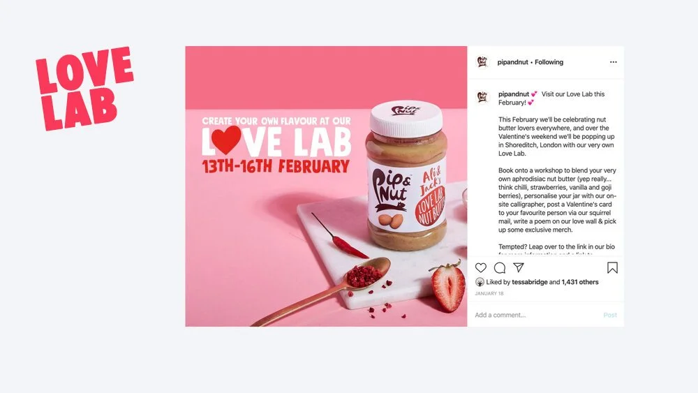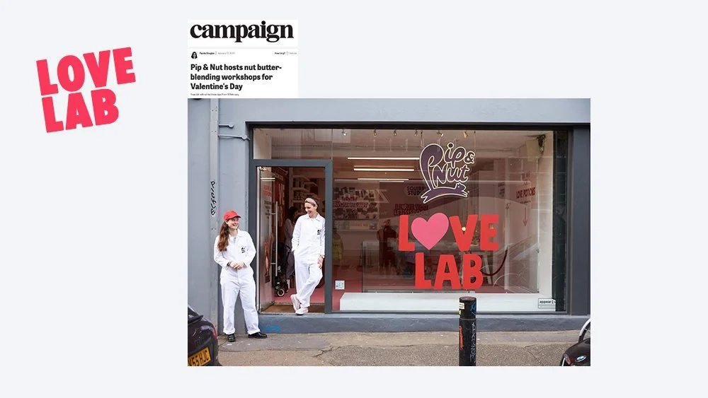 Peanut butter, I am obsessed. At Who Wot Why I created the world’s first Valentine’s Day peanut butter ‘Love Lab,’ a three day pop-up event in Shoreditch inviting superfans, influencers (and myself) to make customised aphrodisiac nut-butter blends. Here’s what Campaign had to say.